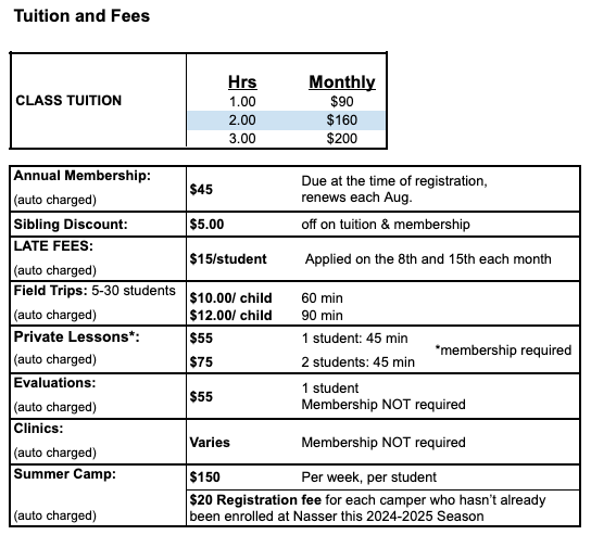 While in session, student enrollment rolls over month to month. Tuition is due monthly on the 1st.